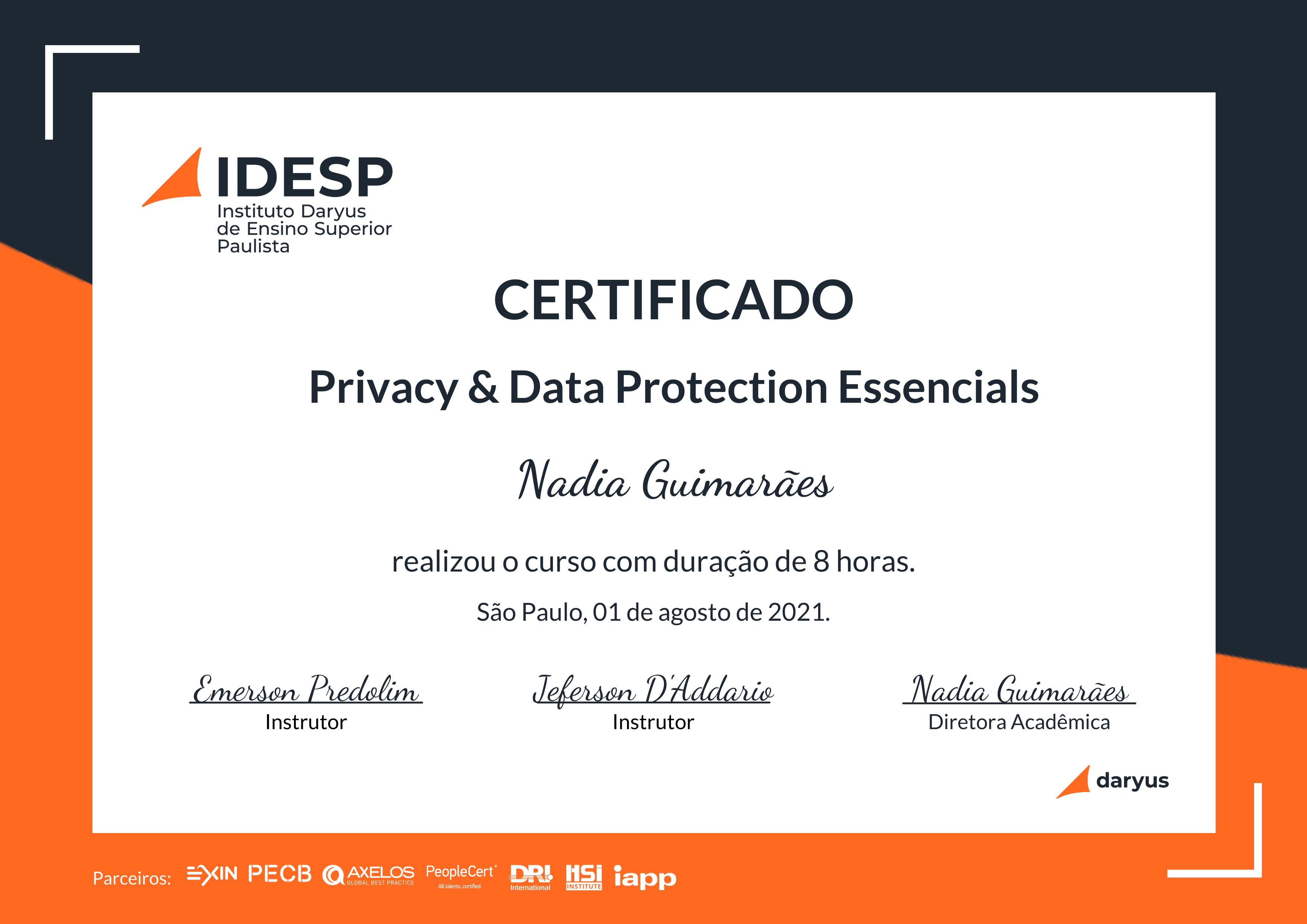 Um treinamento oficial de um instituto internacional e de nome, como é o caso do EXIN, totalmente voltado para a nossa Lei Geral de Proteção de Dados Brasileira, com várias referências a GDPR (Regulamento Geral sobre a Proteção de Dados) e outras regulamentações de proteção de dados pelo mundo.